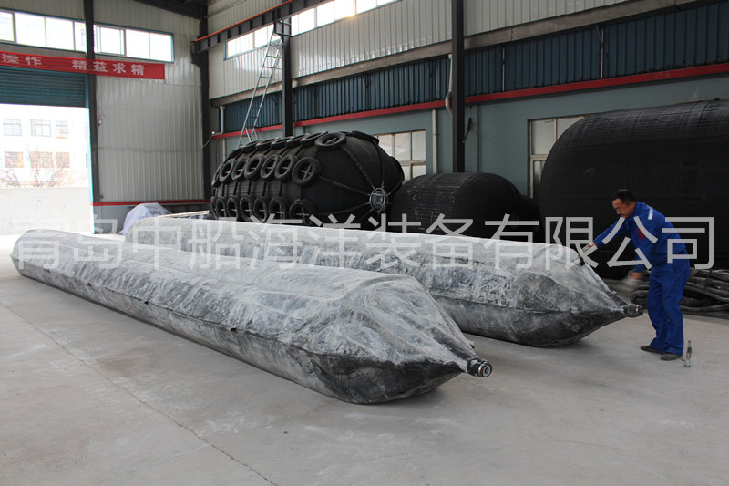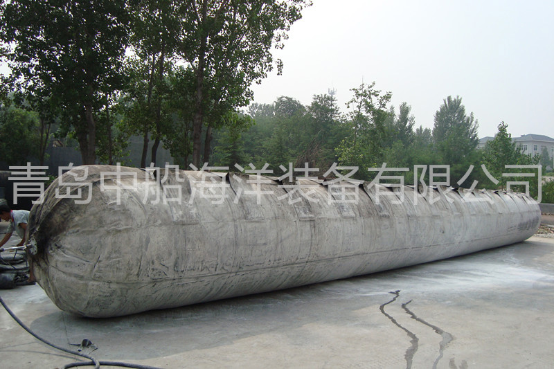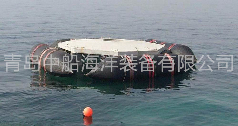 橡膠浮筒除掛在沉船固定位置或與船底千斤頂連接外,還可安放在沉船艙室內(nèi), 充氣后排除艙室的進水以提供浮力。